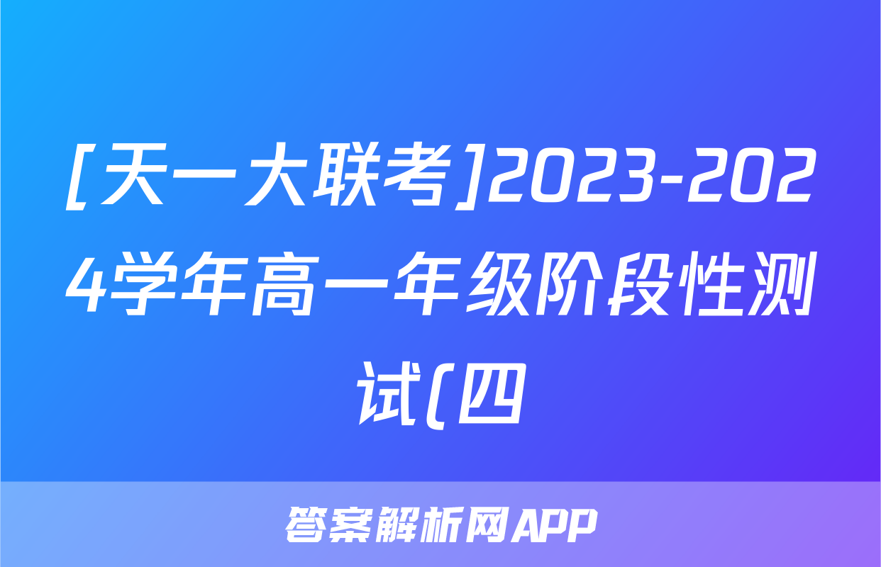 [天一大联考]2023-2024学年高一年级阶段性测试(四)4答案(生物)正在持续更新,目前2026卷行天下答案网为大家整理了相关试题及答案,供大家查缺补漏,高效提升成绩。