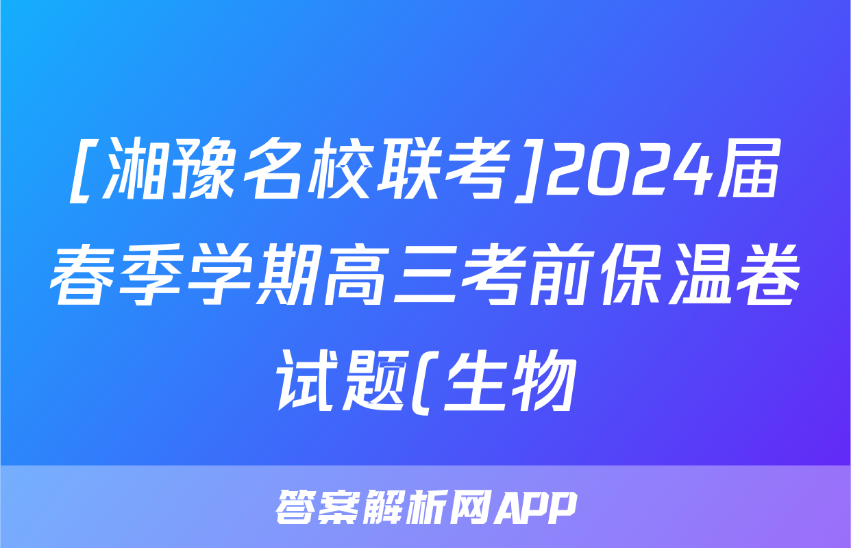[湘豫名校联考]2024届春季学期高三考前保温卷试题(生物)正在持续更新,目前2026卷行天下答案网为大家整理了相关试题及答案,供大家查缺补漏,高效提升成绩。