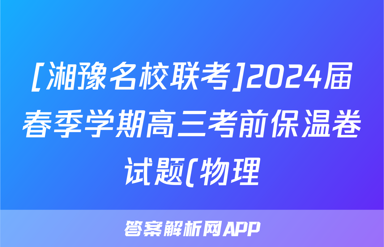 [湘豫名校联考]2024届春季学期高三考前保温卷试题(物理)正在持续更新,目前2026卷行天下答案网为大家整理了相关试题及答案,供大家查缺补漏,高效提升成绩。