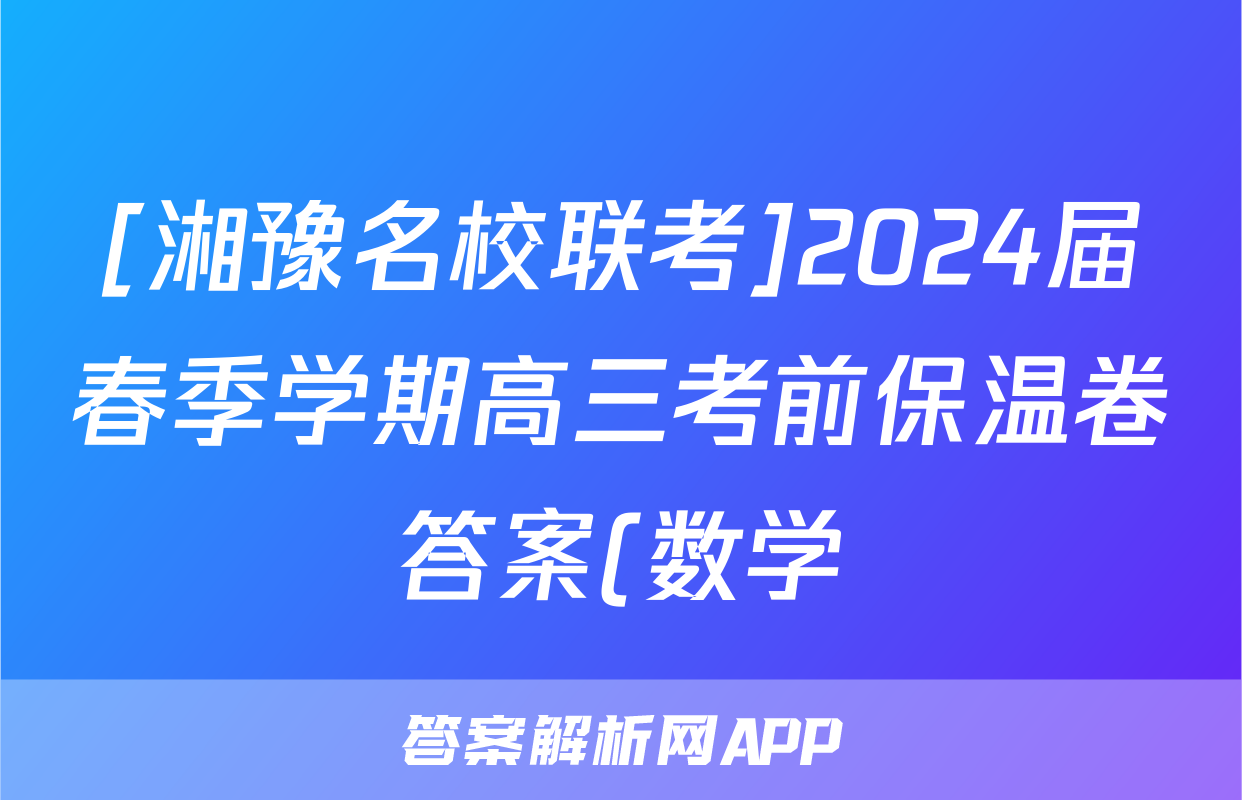 [湘豫名校联考]2024届春季学期高三考前保温卷答案(数学)正在持续更新,目前2026卷行天下答案网为大家整理了相关试题及答案,供大家查缺补漏,高效提升成绩。