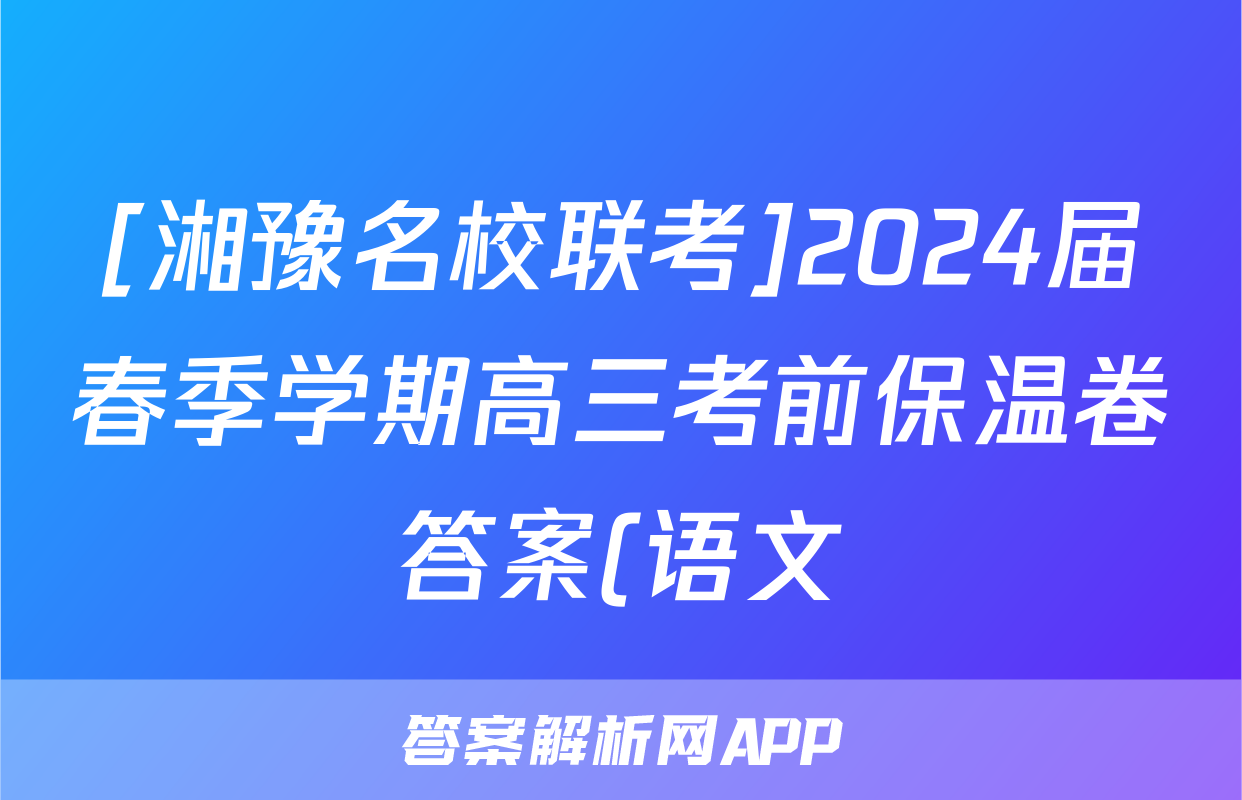 [湘豫名校联考]2024届春季学期高三考前保温卷答案(语文)正在持续更新,目前2026卷行天下答案网为大家整理了相关试题及答案,供大家查缺补漏,高效提升成绩。