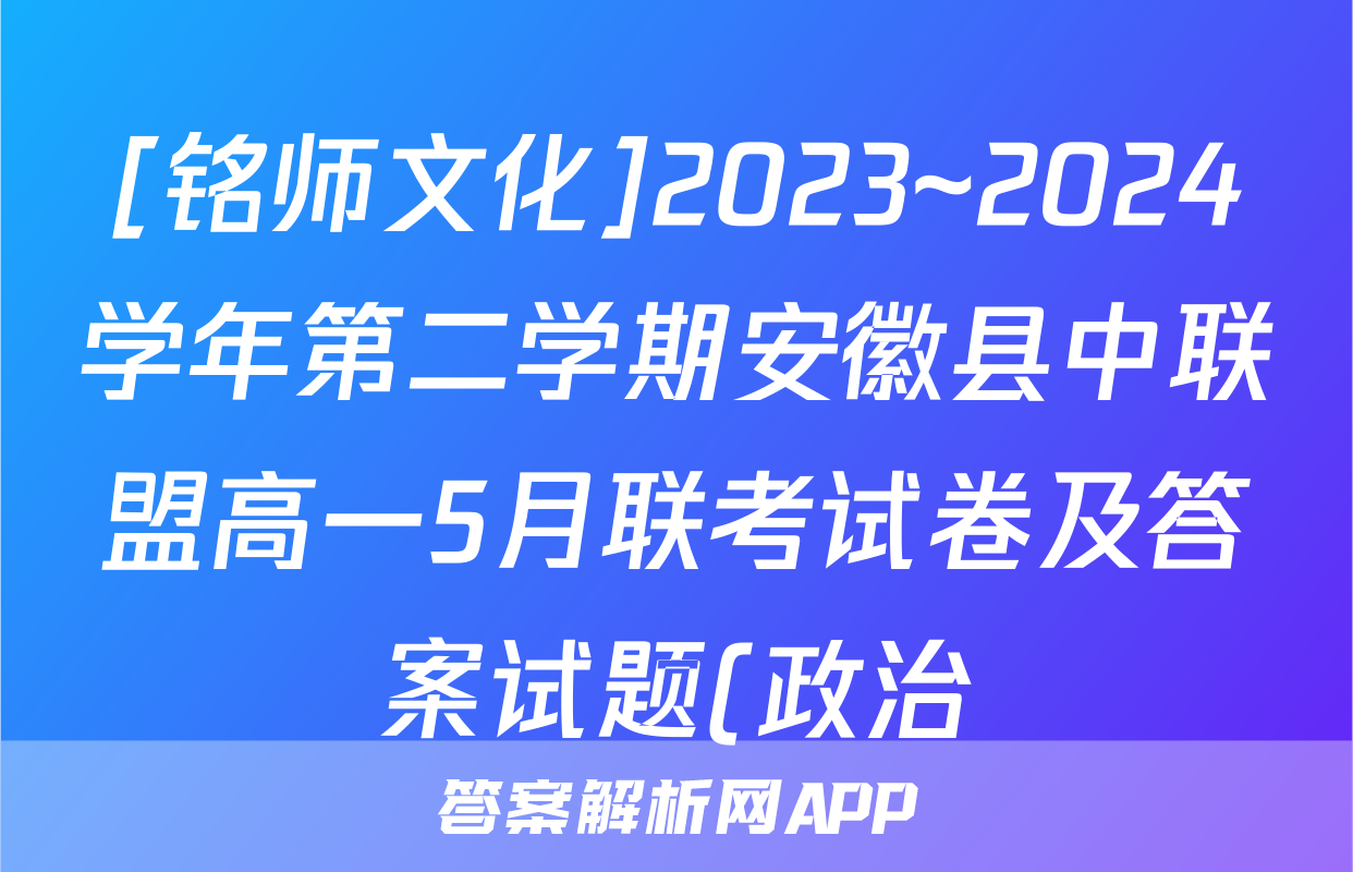 [铭师文化]2023~2024学年第二学期安徽县中联盟高一5月联考试卷及答案试题(政治)正在持续更新,目前2026卷行天下答案网为大家整理了相关试题及答案,供大家查缺补漏,高效提升成绩。