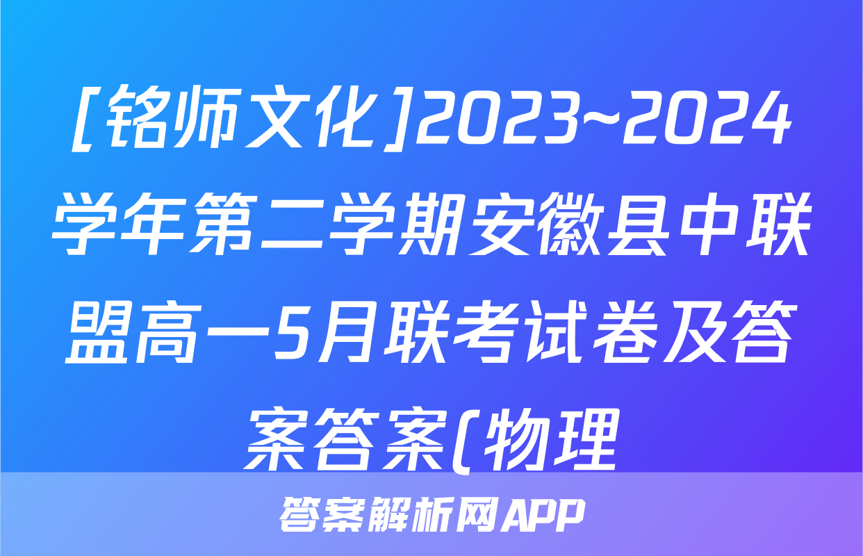 [铭师文化]2023~2024学年第二学期安徽县中联盟高一5月联考试卷及答案答案(物理)正在持续更新,目前2026卷行天下答案网为大家整理了相关试题及答案,供大家查缺补漏,高效提升成绩。