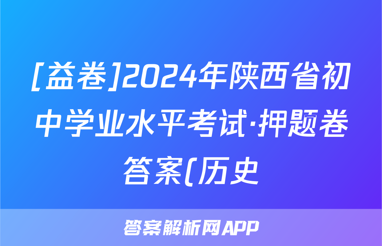 [益卷]2024年陕西省初中学业水平考试·押题卷答案(历史)正在持续更新,目前2026卷行天下答案网为大家整理了相关试题及答案,供大家查缺补漏,高效提升成绩。