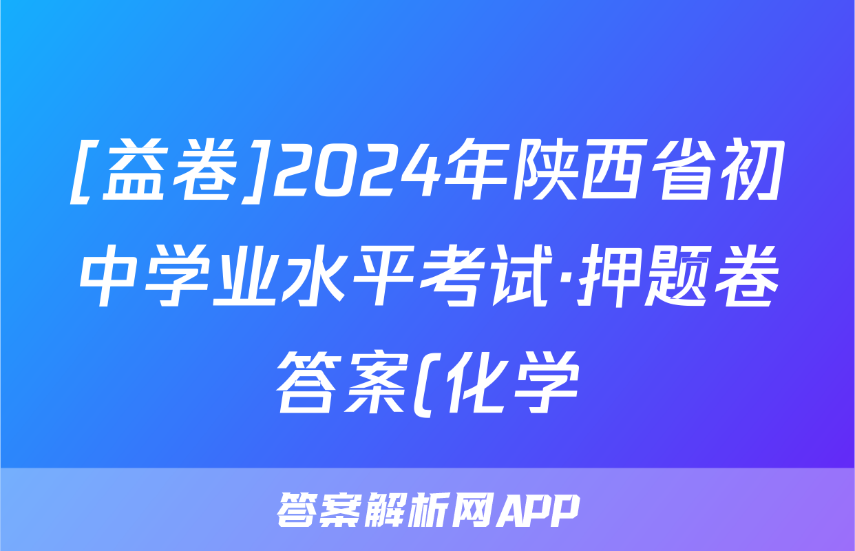[益卷]2024年陕西省初中学业水平考试·押题卷答案(化学)正在持续更新,目前2026卷行天下答案网为大家整理了相关试题及答案,供大家查缺补漏,高效提升成绩。