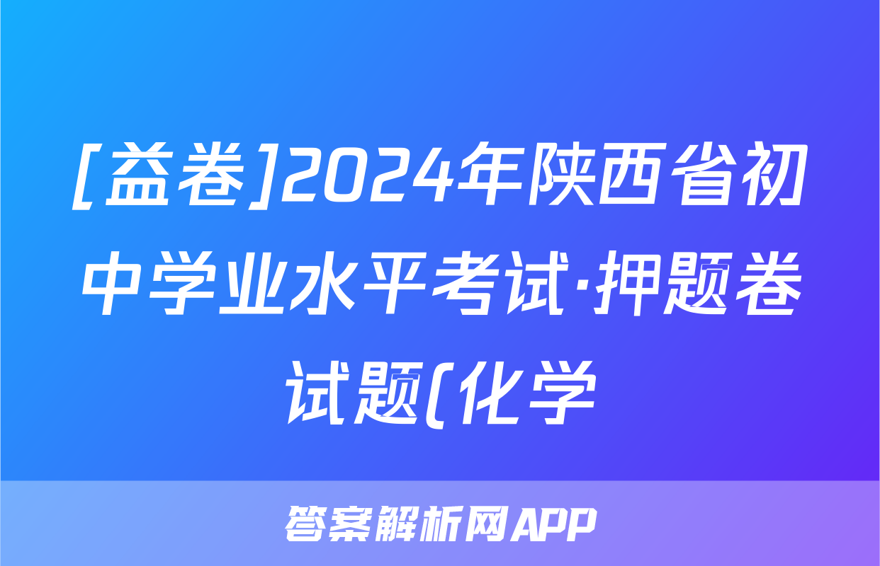[益卷]2024年陕西省初中学业水平考试·押题卷试题(化学)正在持续更新,目前2026卷行天下答案网为大家整理了相关试题及答案,供大家查缺补漏,高效提升成绩。