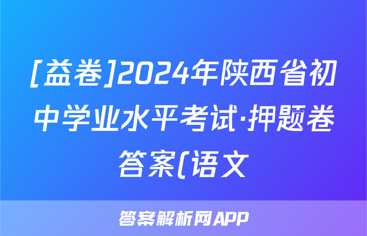 [益卷]2024年陕西省初中学业水平考试·押题卷答案(语文)正在持续更新,目前2026卷行天下答案网为大家整理了相关试题及答案,供大家查缺补漏,高效提升成绩。