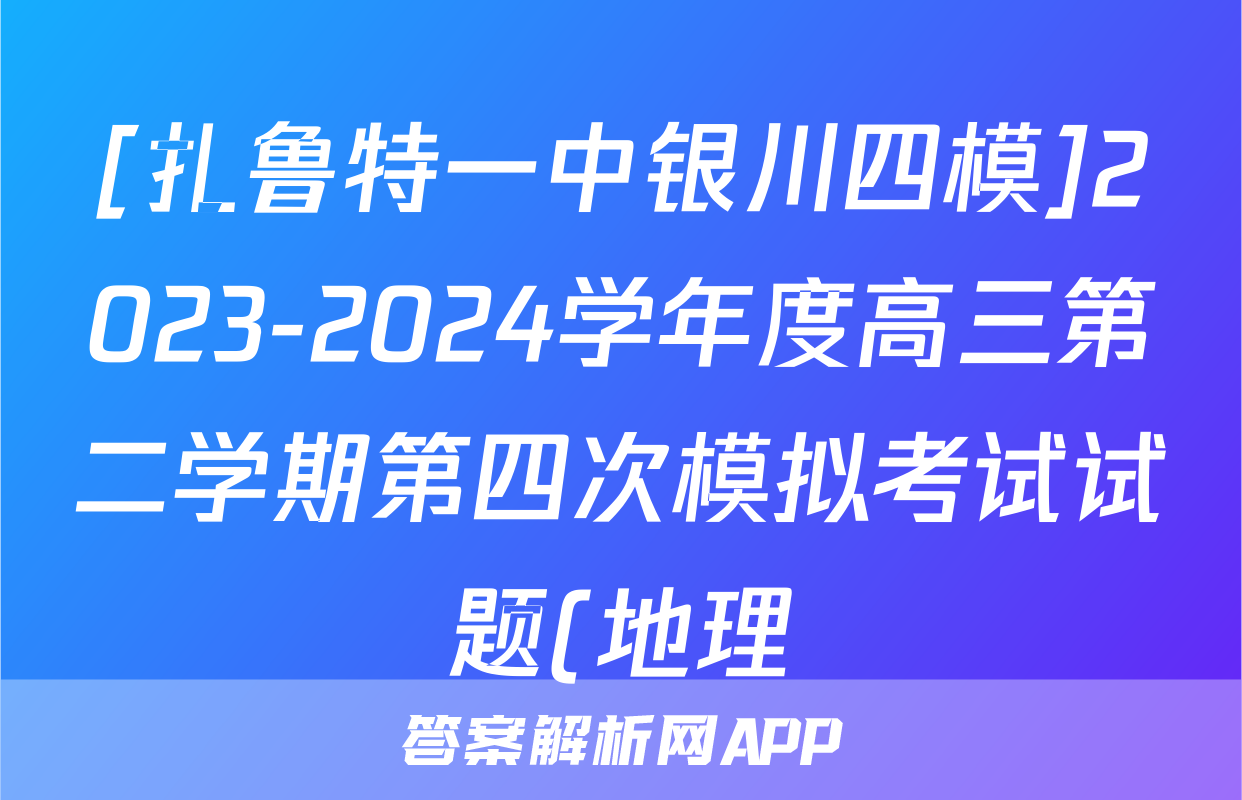 [扎鲁特一中银川四模]2023-2024学年度高三第二学期第四次模拟考试试题(地理)正在持续更新,目前2026卷行天下答案网为大家整理了相关试题及答案,供大家查缺补漏,高效提升成绩。