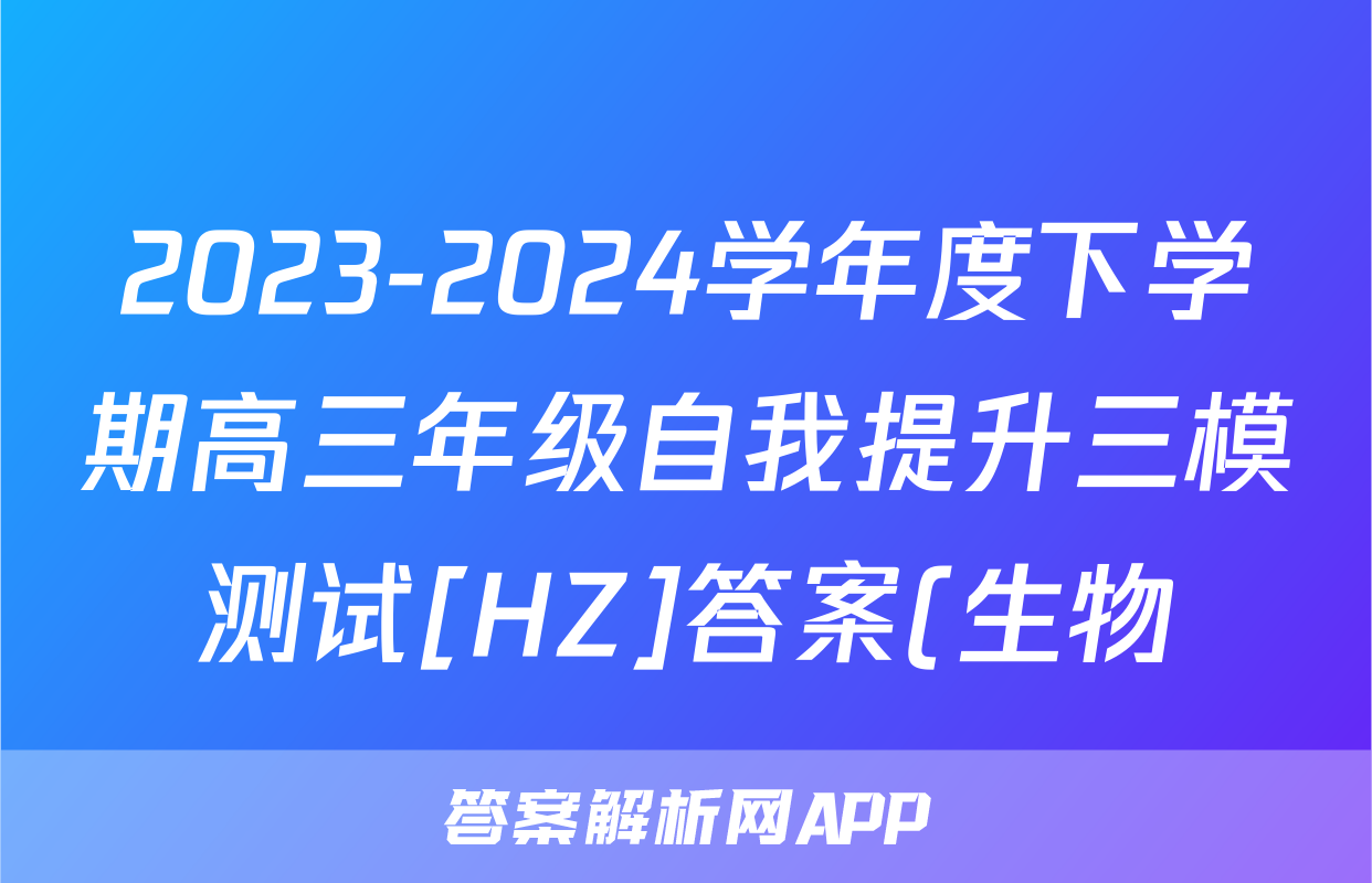 2023-2024学年度下学期高三年级自我提升三模测试[HZ]答案(生物)正在持续更新,目前2026卷行天下答案网为大家整理了相关试题及答案,供大家查缺补漏,高效提升成绩。