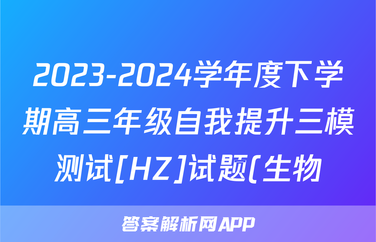 2023-2024学年度下学期高三年级自我提升三模测试[HZ]试题(生物)正在持续更新,目前2026卷行天下答案网为大家整理了相关试题及答案,供大家查缺补漏,高效提升成绩。