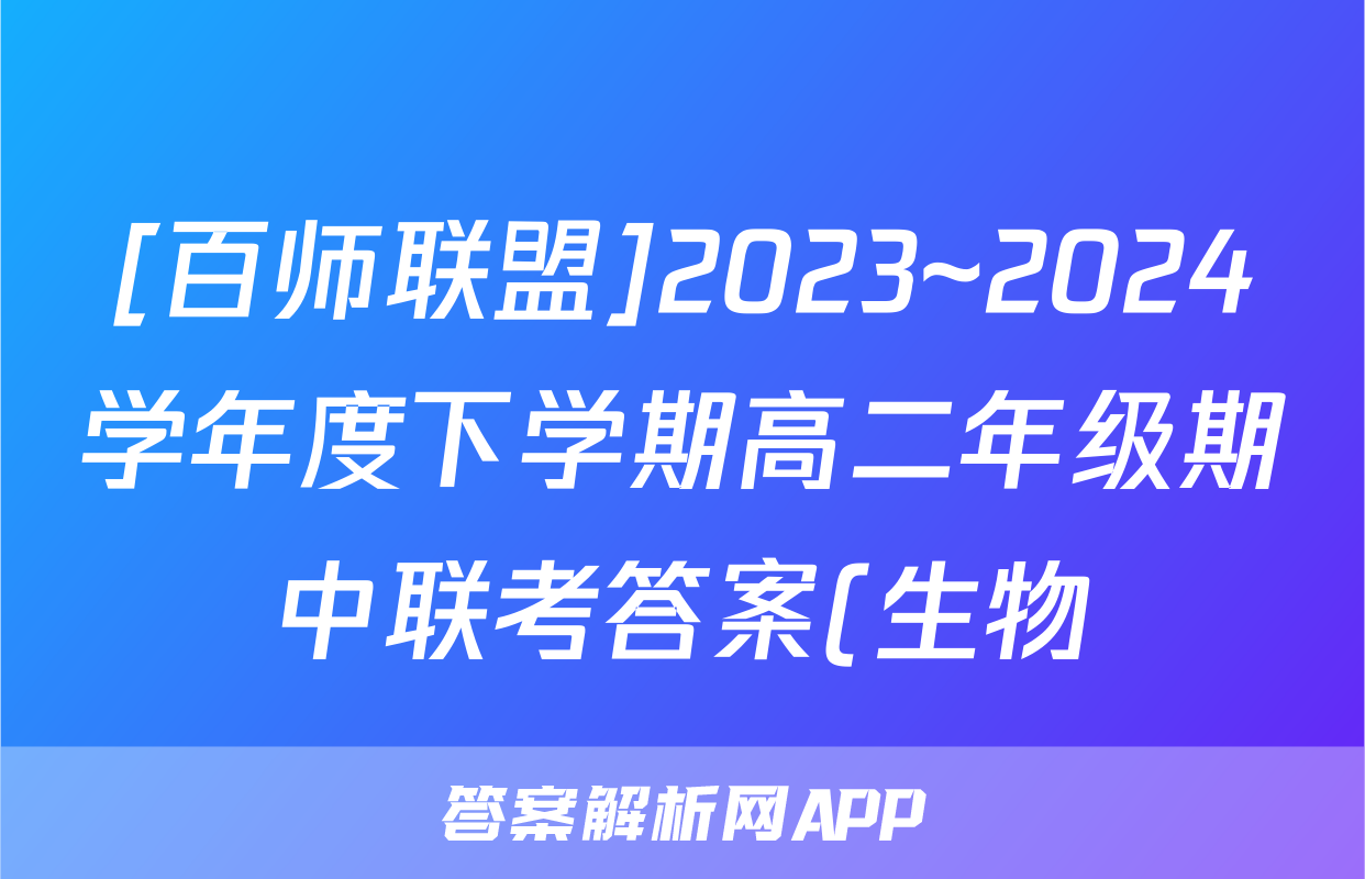 [百师联盟]2023~2024学年度下学期高二年级期中联考答案(生物)正在持续更新,目前2026卷行天下答案网为大家整理了相关试题及答案,供大家查缺补漏,高效提升成绩。