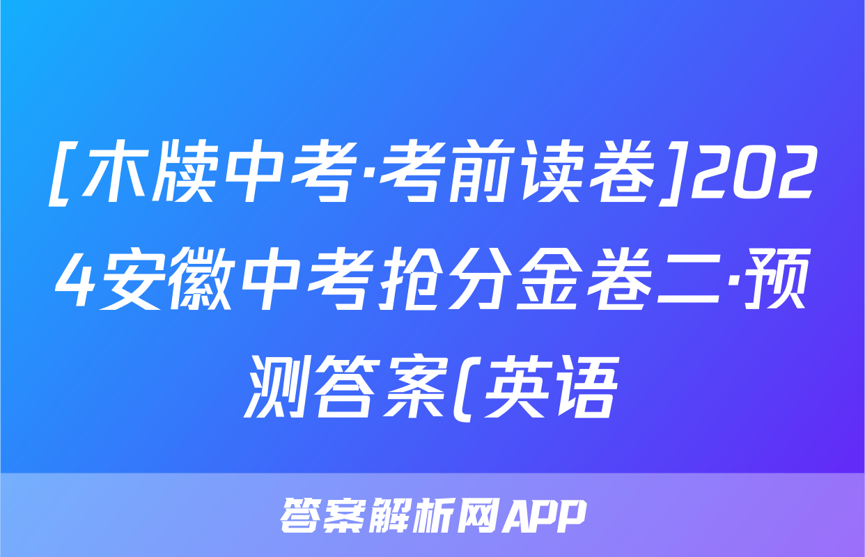 [木牍中考·考前读卷]2024安徽中考抢分金卷二·预测答案(英语)正在持续更新,目前2026卷行天下答案网为大家整理了相关试题及答案,供大家查缺补漏,高效提升成绩。