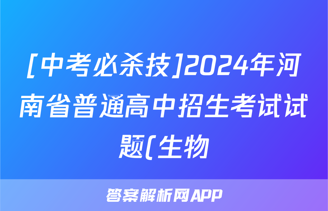 [中考必杀技]2024年河南省普通高中招生考试试题(生物)正在持续更新,目前2026卷行天下答案网为大家整理了相关试题及答案,供大家查缺补漏,高效提升成绩。