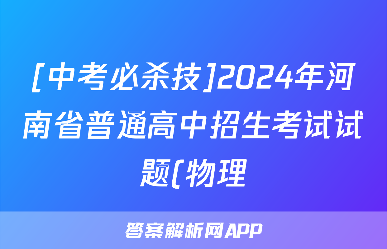 [中考必杀技]2024年河南省普通高中招生考试试题(物理)正在持续更新,目前2026卷行天下答案网为大家整理了相关试题及答案,供大家查缺补漏,高效提升成绩。