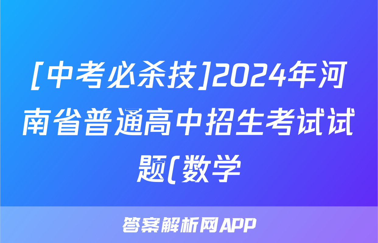 [中考必杀技]2024年河南省普通高中招生考试试题(数学)正在持续更新,目前2026卷行天下答案网为大家整理了相关试题及答案,供大家查缺补漏,高效提升成绩。