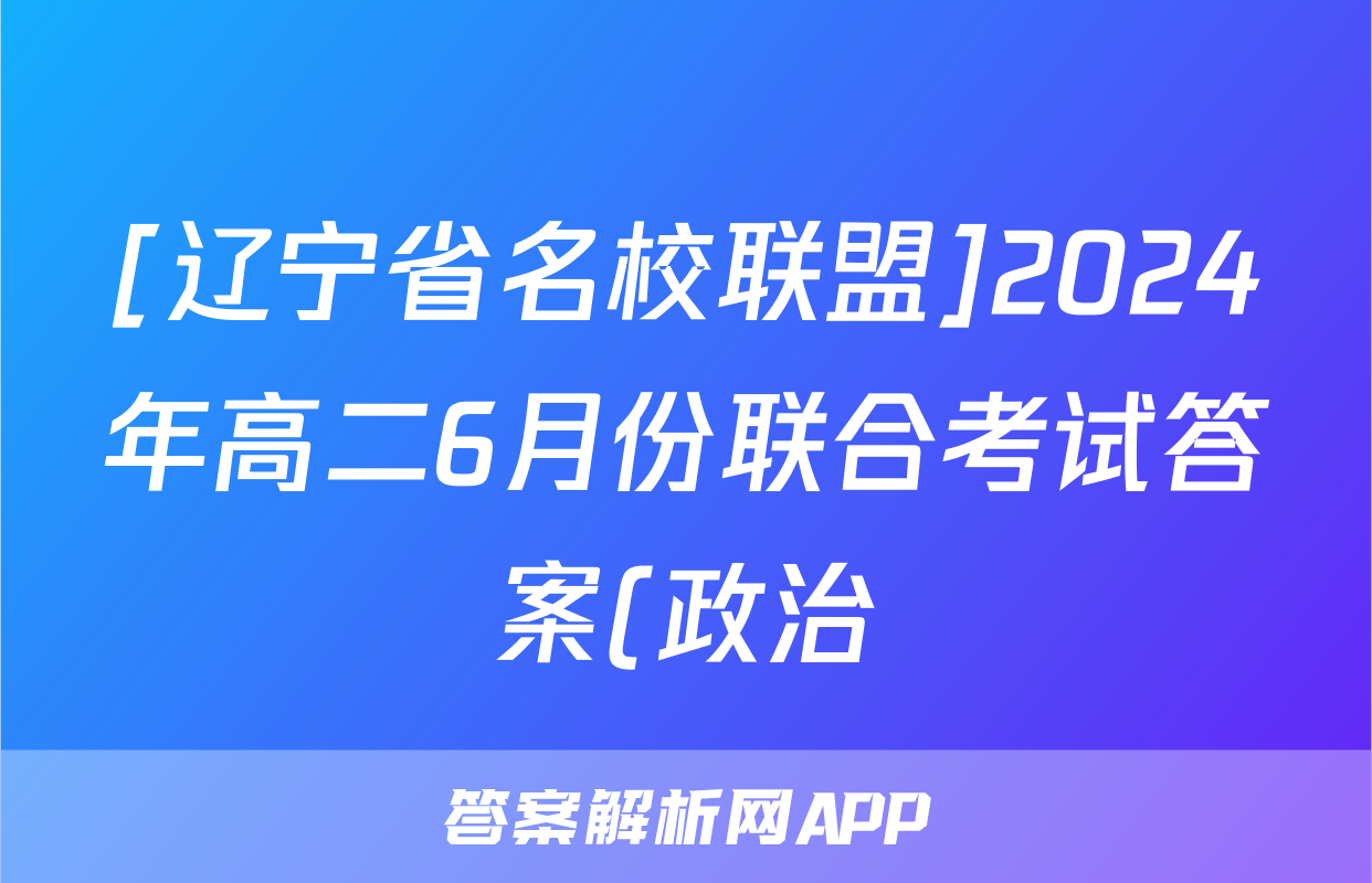 [辽宁省名校联盟]2024年高二6月份联合考试答案(政治)正在持续更新,目前2026卷行天下答案网为大家整理了相关试题及答案,供大家查缺补漏,高效提升成绩。