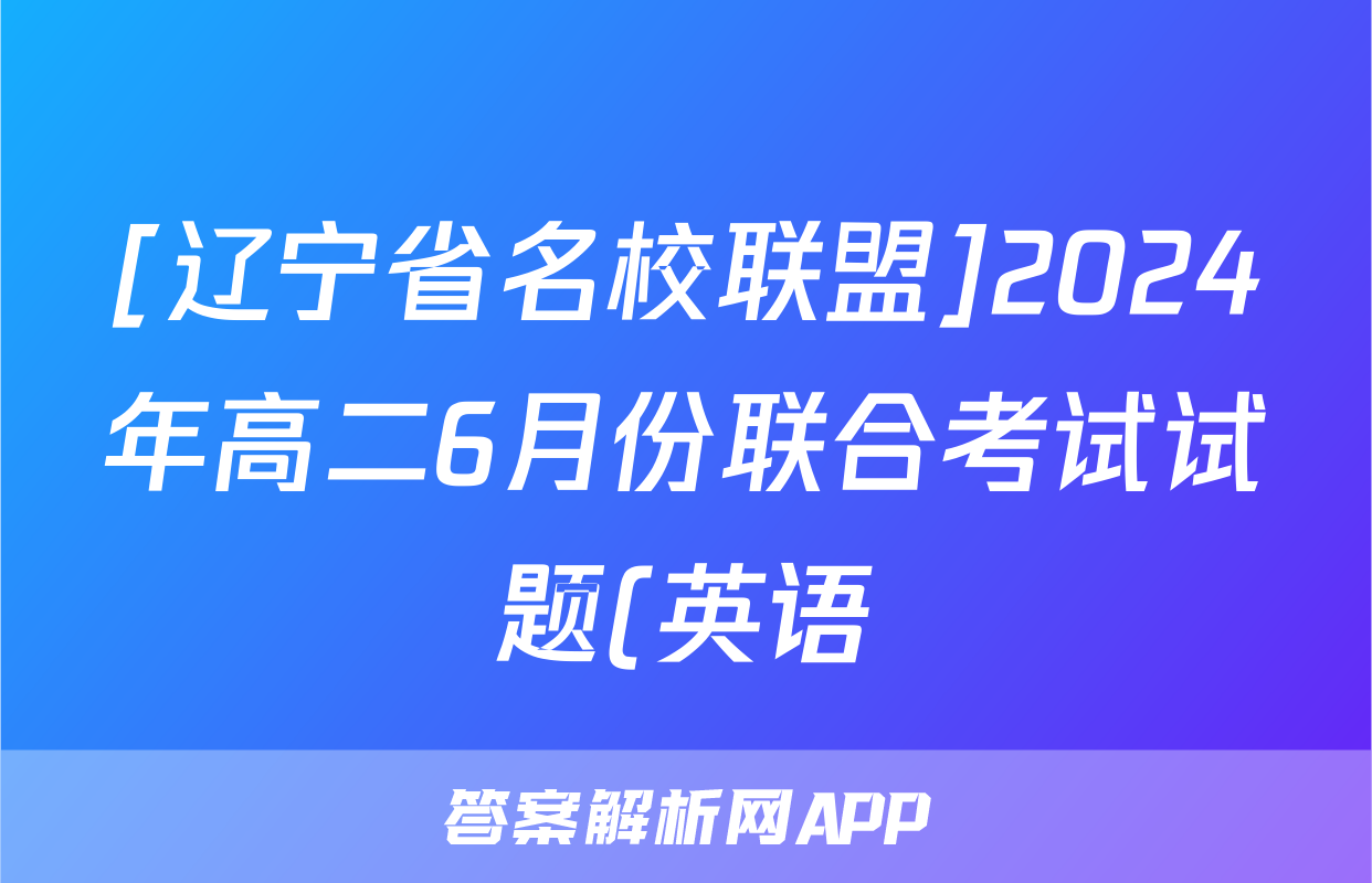 [辽宁省名校联盟]2024年高二6月份联合考试试题(英语)正在持续更新,目前2026卷行天下答案网为大家整理了相关试题及答案,供大家查缺补漏,高效提升成绩。