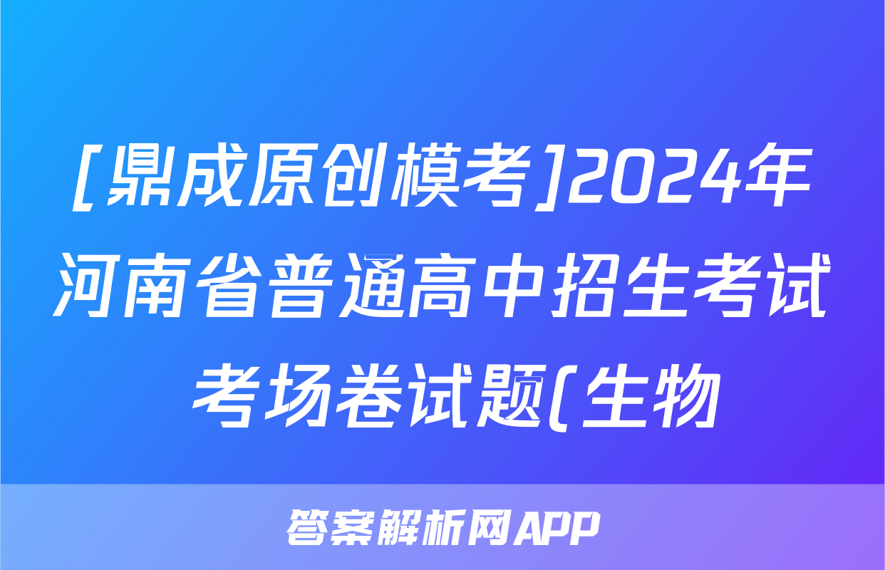 [鼎成原创模考]2024年河南省普通高中招生考试 考场卷试题(生物)正在持续更新,目前2026卷行天下答案网为大家整理了相关试题及答案,供大家查缺补漏,高效提升成绩。
