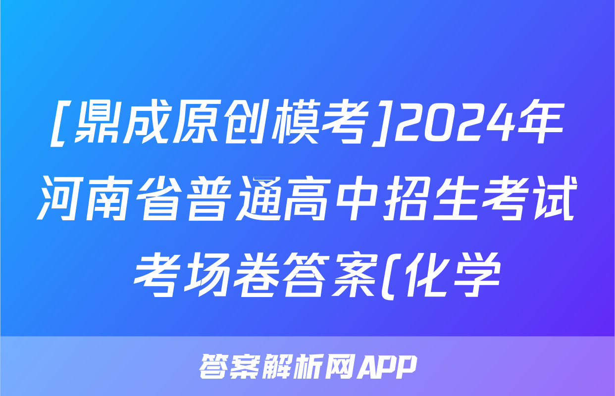 [鼎成原创模考]2024年河南省普通高中招生考试 考场卷答案(化学)正在持续更新,目前2026卷行天下答案网为大家整理了相关试题及答案,供大家查缺补漏,高效提升成绩。