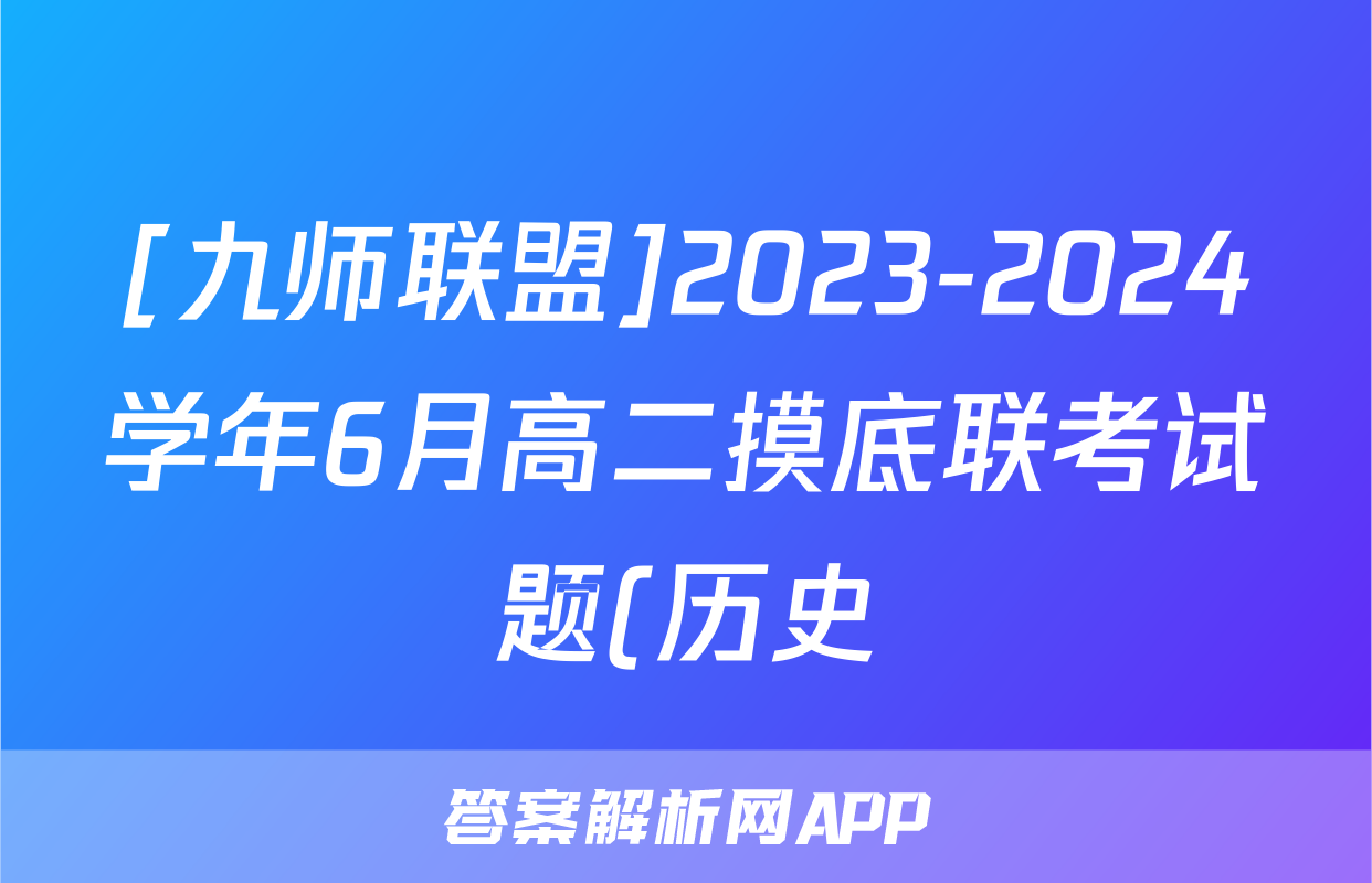 [九师联盟]2023-2024学年6月高二摸底联考试题(历史)正在持续更新,目前2026卷行天下答案网为大家整理了相关试题及答案,供大家查缺补漏,高效提升成绩。