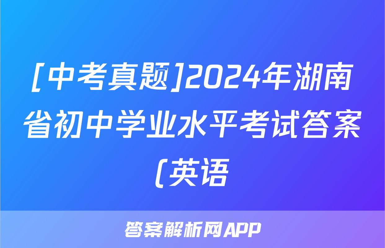 [中考真题]2024年湖南省初中学业水平考试答案(英语)正在持续更新,目前2026卷行天下答案网为大家整理了相关试题及答案,供大家查缺补漏,高效提升成绩。