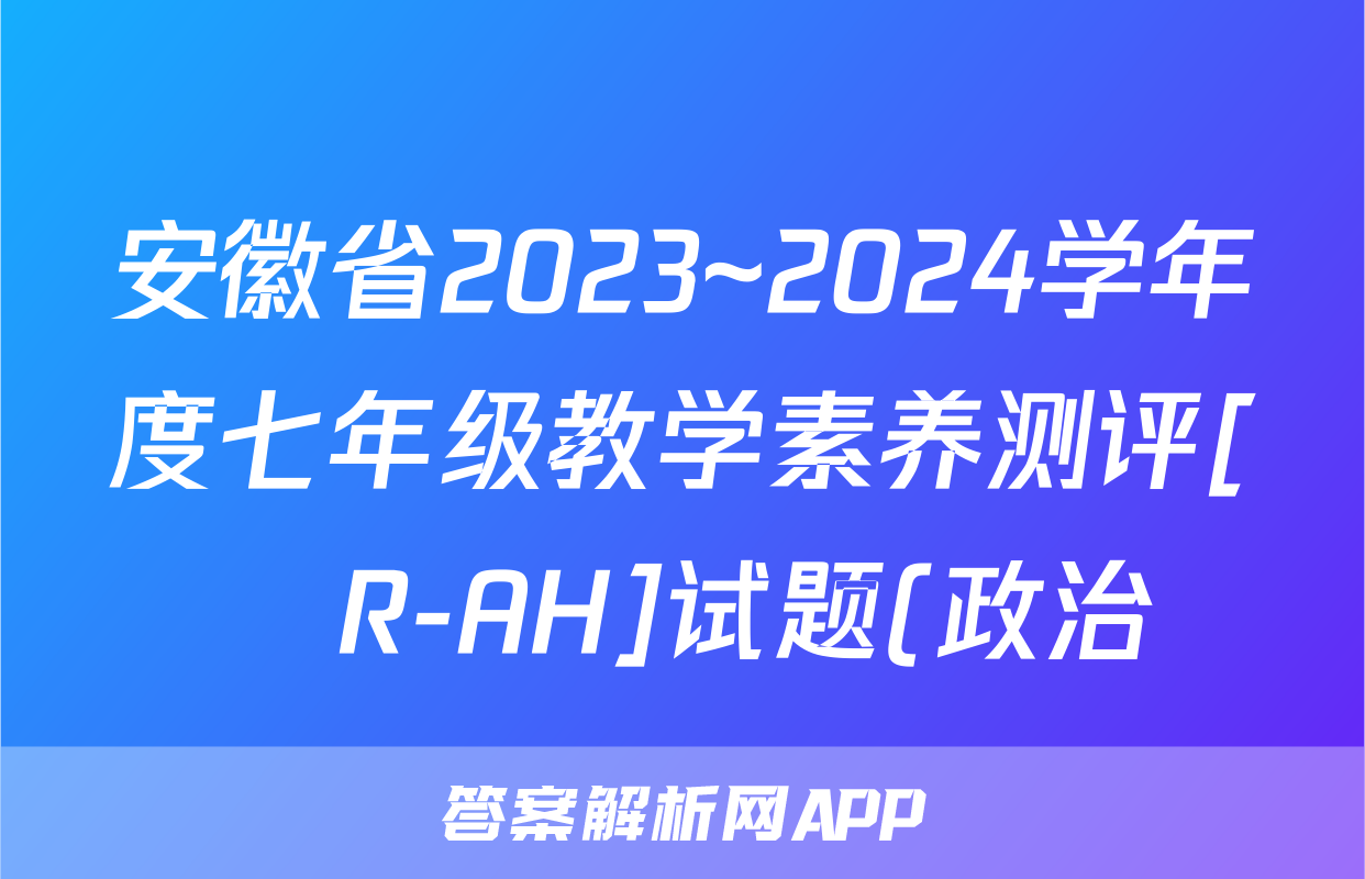 安徽省2023~2024学年度七年级教学素养测评[☐R-AH]试题(政治)正在持续更新,目前2026卷行天下答案网为大家整理了相关试题及答案,供大家查缺补漏,高效提升成绩。