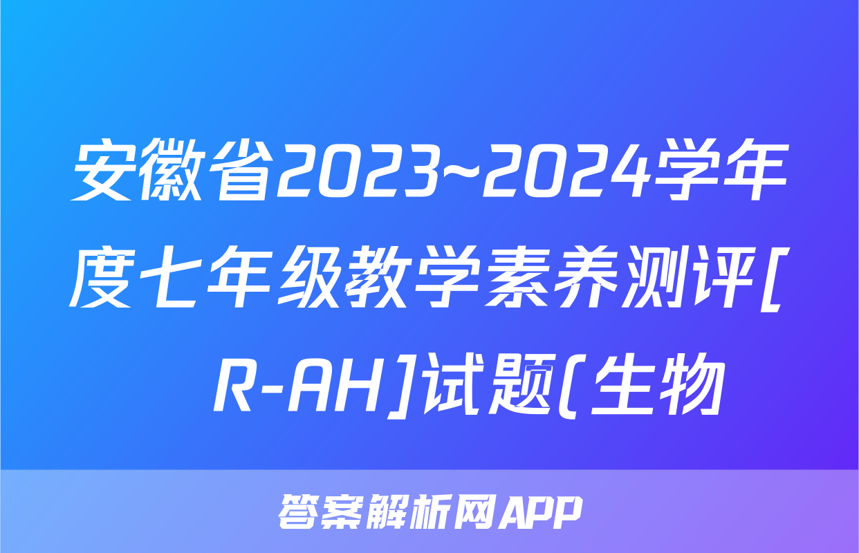 安徽省2023~2024学年度七年级教学素养测评[☐R-AH]试题(生物)正在持续更新,目前2026卷行天下答案网为大家整理了相关试题及答案,供大家查缺补漏,高效提升成绩。
