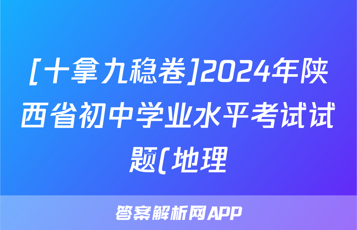 [十拿九稳卷]2024年陕西省初中学业水平考试试题(地理)正在持续更新,目前2026卷行天下答案网为大家整理了相关试题及答案,供大家查缺补漏,高效提升成绩。