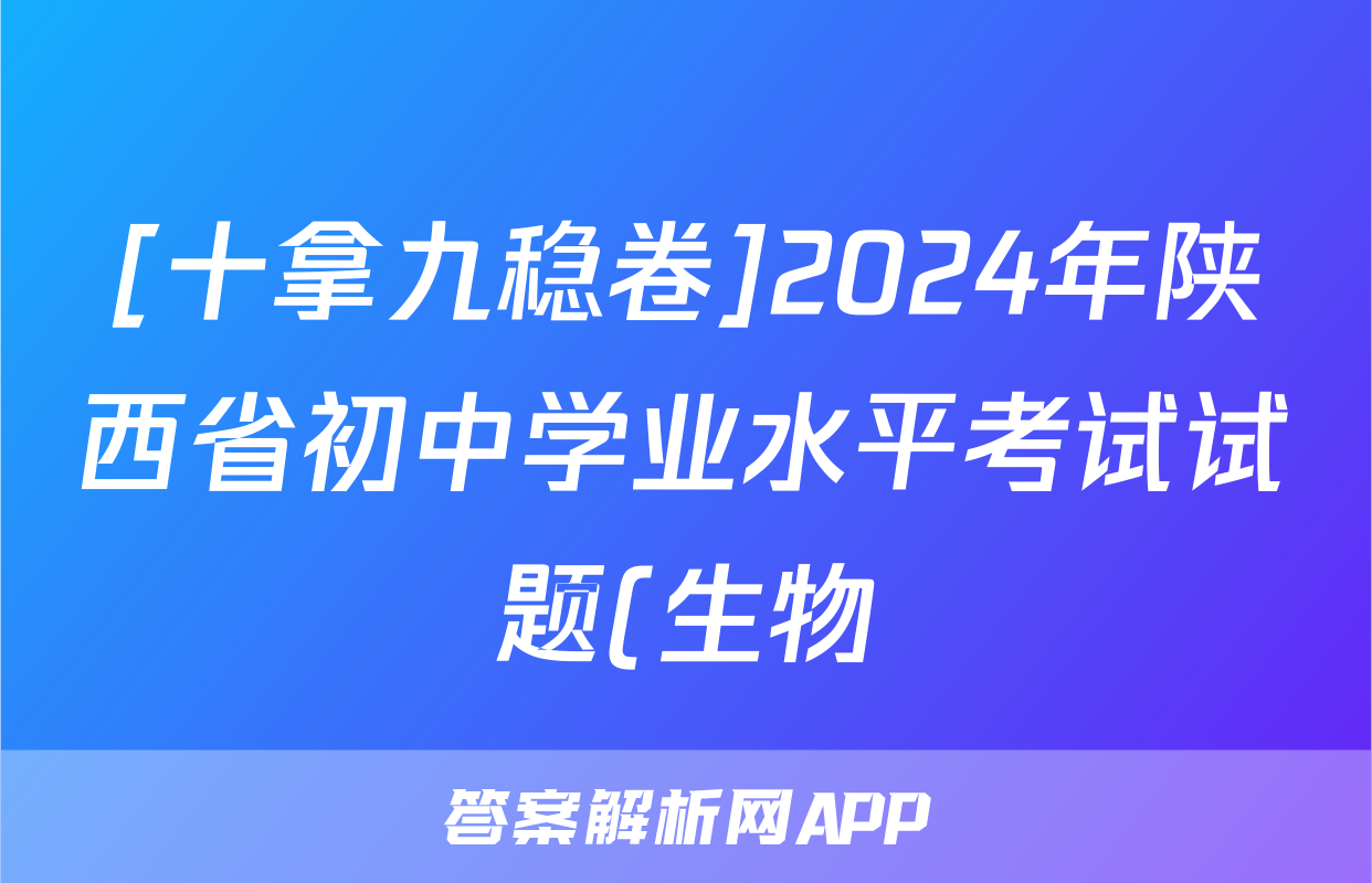 [十拿九稳卷]2024年陕西省初中学业水平考试试题(生物)正在持续更新,目前2026卷行天下答案网为大家整理了相关试题及答案,供大家查缺补漏,高效提升成绩。
