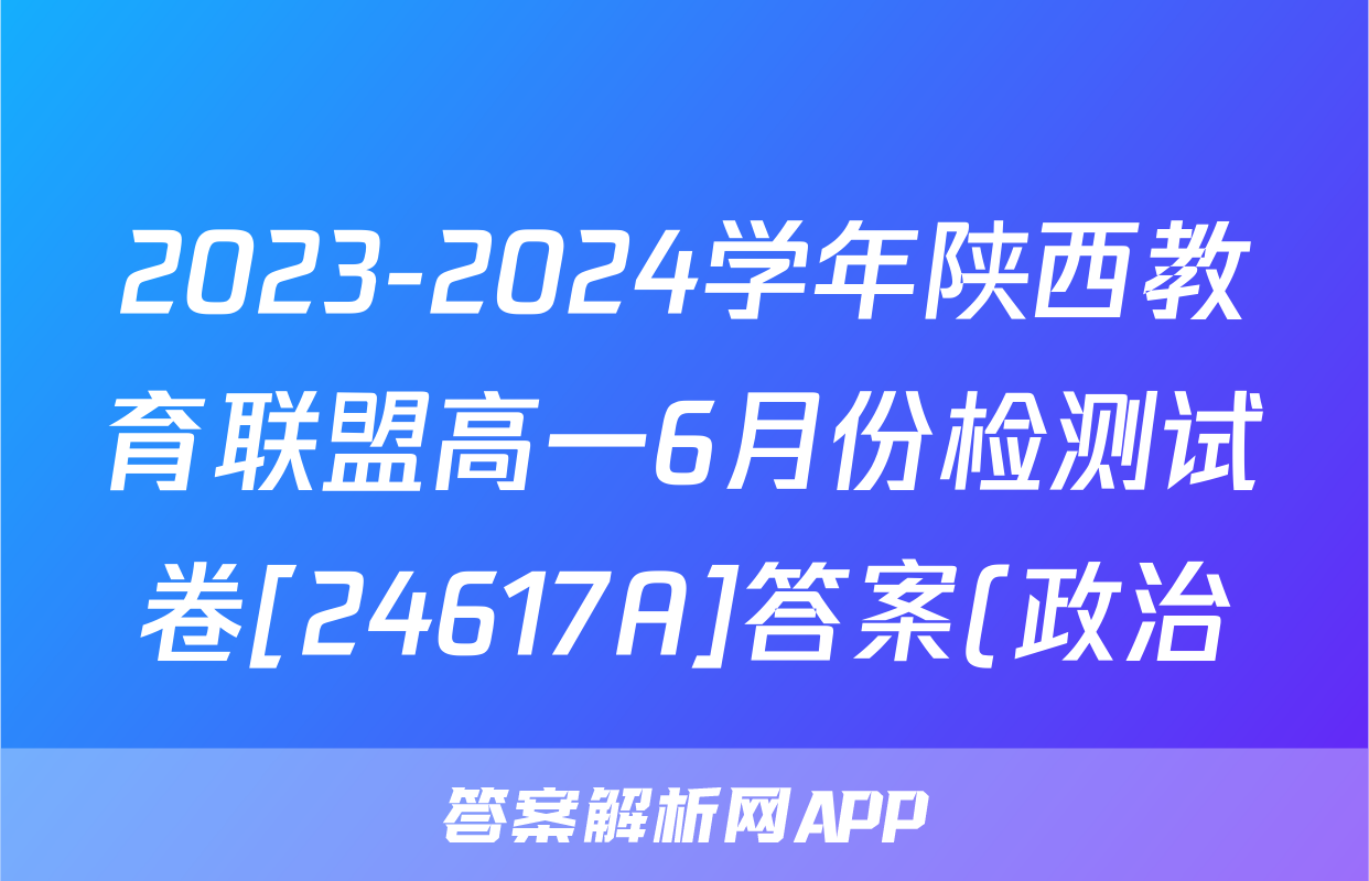 2023-2024学年陕西教育联盟高一6月份检测试卷[24617A]答案(政治)正在持续更新,目前2026卷行天下答案网为大家整理了相关试题及答案,供大家查缺补漏,高效提升成绩。