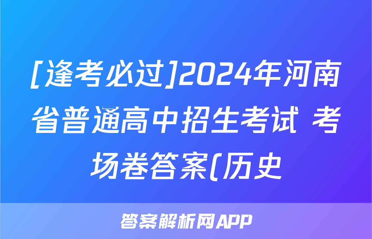 [逢考必过]2024年河南省普通高中招生考试 考场卷答案(历史)正在持续更新,目前2026卷行天下答案网为大家整理了相关试题及答案,供大家查缺补漏,高效提升成绩。