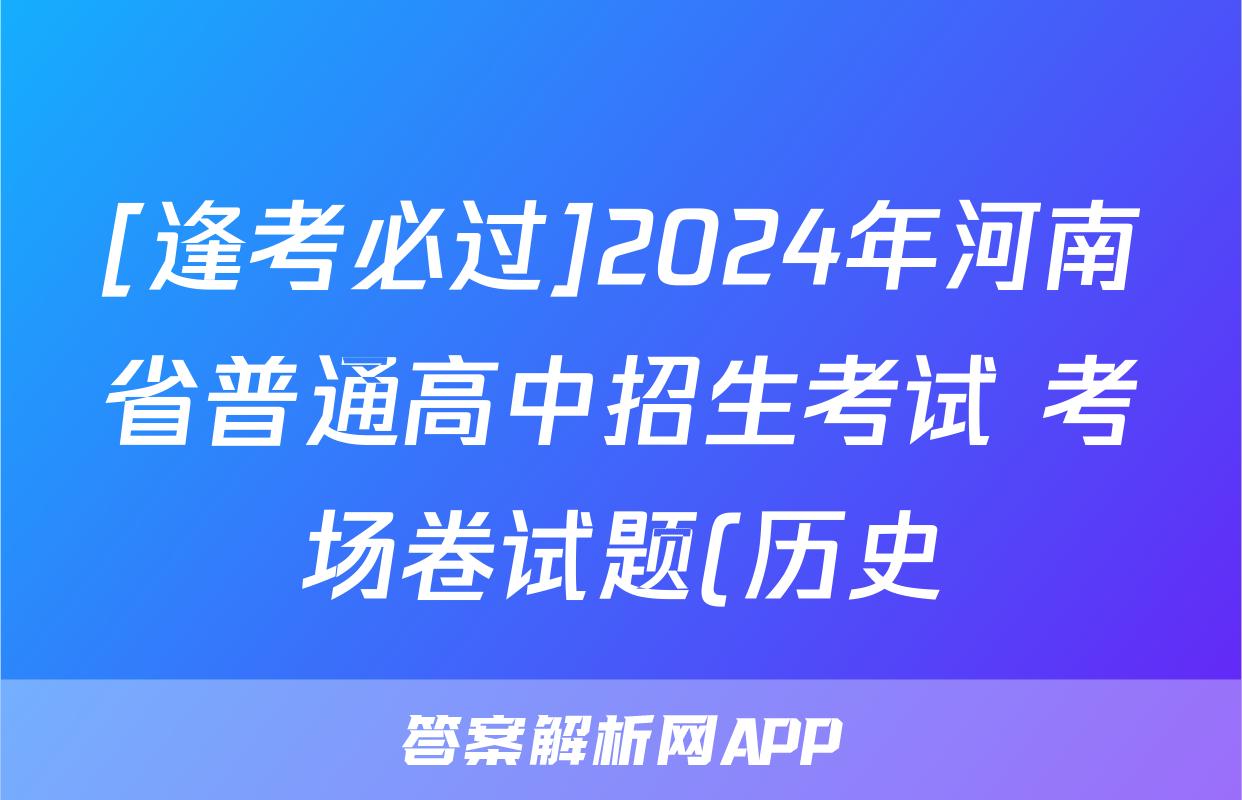 [逢考必过]2024年河南省普通高中招生考试 考场卷试题(历史)正在持续更新,目前2026卷行天下答案网为大家整理了相关试题及答案,供大家查缺补漏,高效提升成绩。
