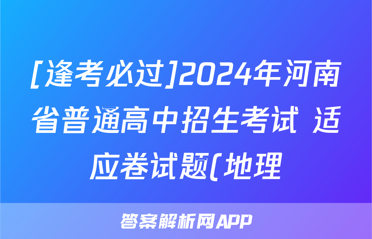 [逢考必过]2024年河南省普通高中招生考试 适应卷试题(地理)正在持续更新,目前2026卷行天下答案网为大家整理了相关试题及答案,供大家查缺补漏,高效提升成绩。