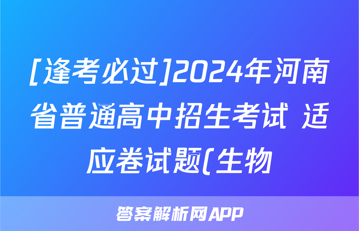 [逢考必过]2024年河南省普通高中招生考试 适应卷试题(生物)正在持续更新,目前2026卷行天下答案网为大家整理了相关试题及答案,供大家查缺补漏,高效提升成绩。