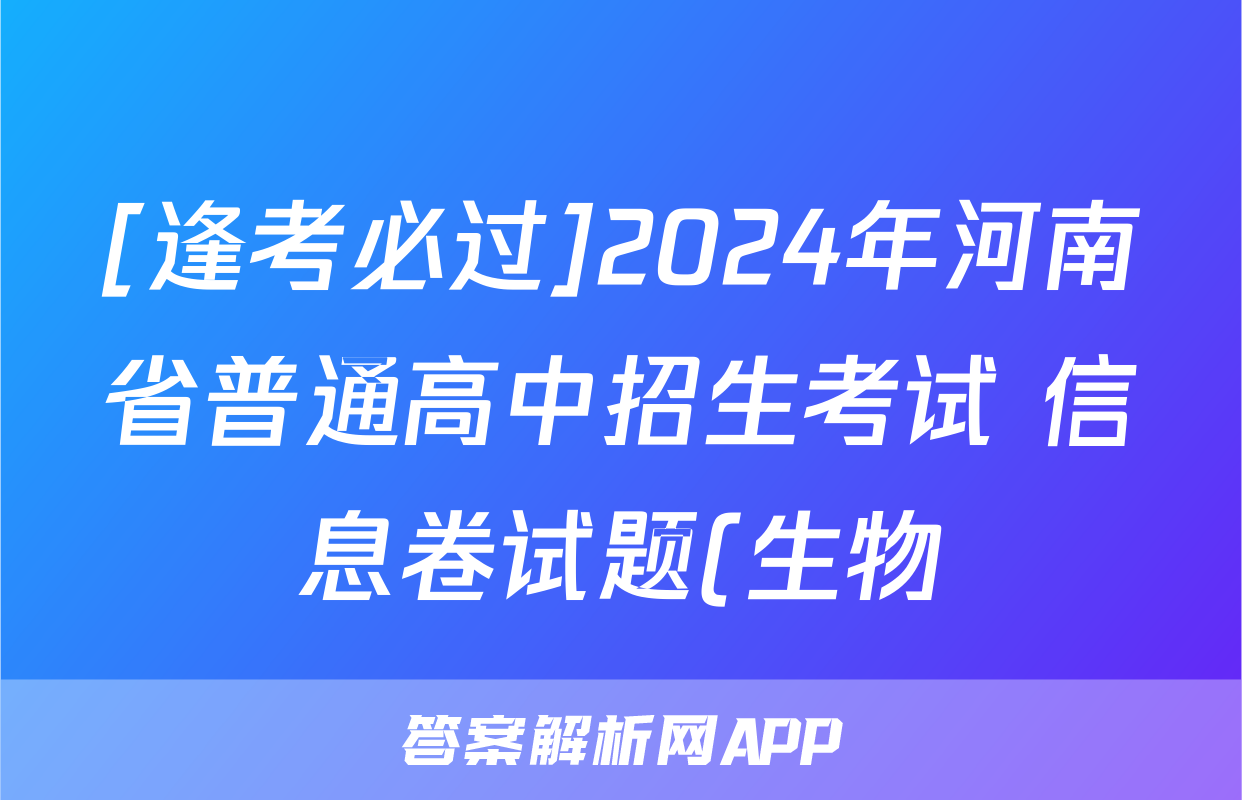 [逢考必过]2024年河南省普通高中招生考试 信息卷试题(生物)正在持续更新,目前2026卷行天下答案网为大家整理了相关试题及答案,供大家查缺补漏,高效提升成绩。