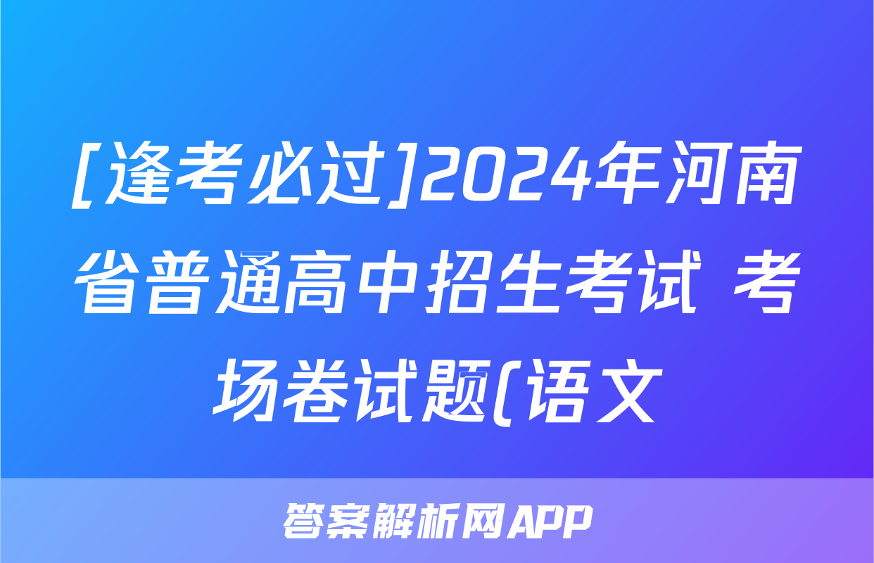 [逢考必过]2024年河南省普通高中招生考试 考场卷试题(语文)正在持续更新,目前2026卷行天下答案网为大家整理了相关试题及答案,供大家查缺补漏,高效提升成绩。