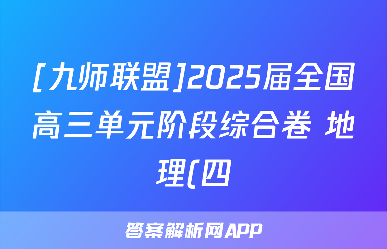 [九师联盟]2025届全国高三单元阶段综合卷 地理(四)4答案正在持续更新,目前2026卷行天下答案网为大家整理了相关试题及答案,供大家查缺补漏,高效提升成绩。