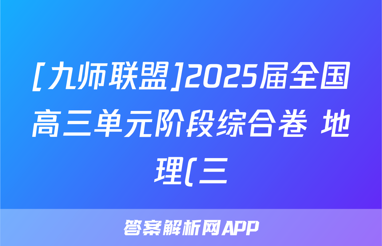 [九师联盟]2025届全国高三单元阶段综合卷 地理(三)3答案正在持续更新,目前2026卷行天下答案网为大家整理了相关试题及答案,供大家查缺补漏,高效提升成绩。