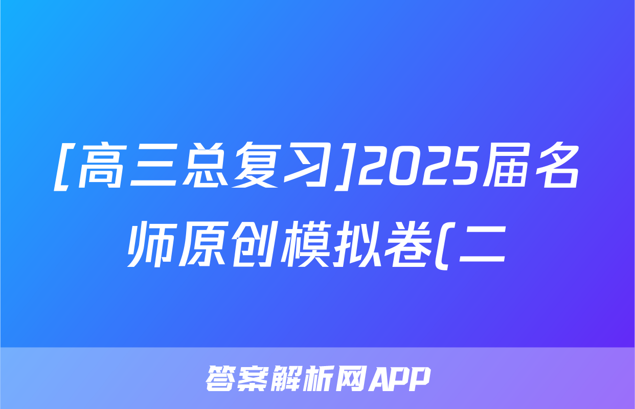 [高三总复习]2025届名师原创模拟卷(二)2化学(CQX5)试题正在持续更新,目前2026卷行天下答案网为大家整理了相关试题及答案,供大家查缺补漏,高效提升成绩。