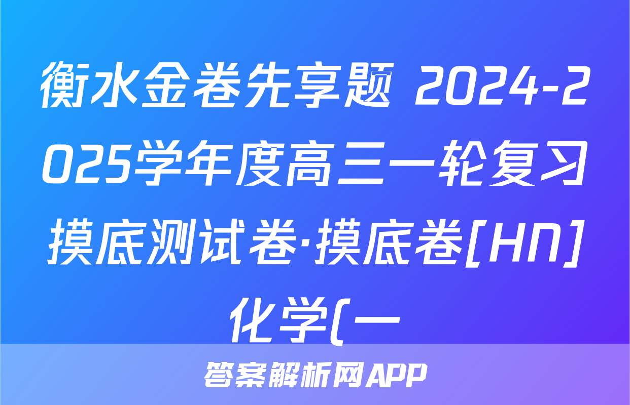 衡水金卷先享题 2024-2025学年度高三一轮复习摸底测试卷·摸底卷[HN]化学(一)1试题正在持续更新,目前2026卷行天下答案网为大家整理了相关试题及答案,供大家查缺补漏,高效提升成绩。