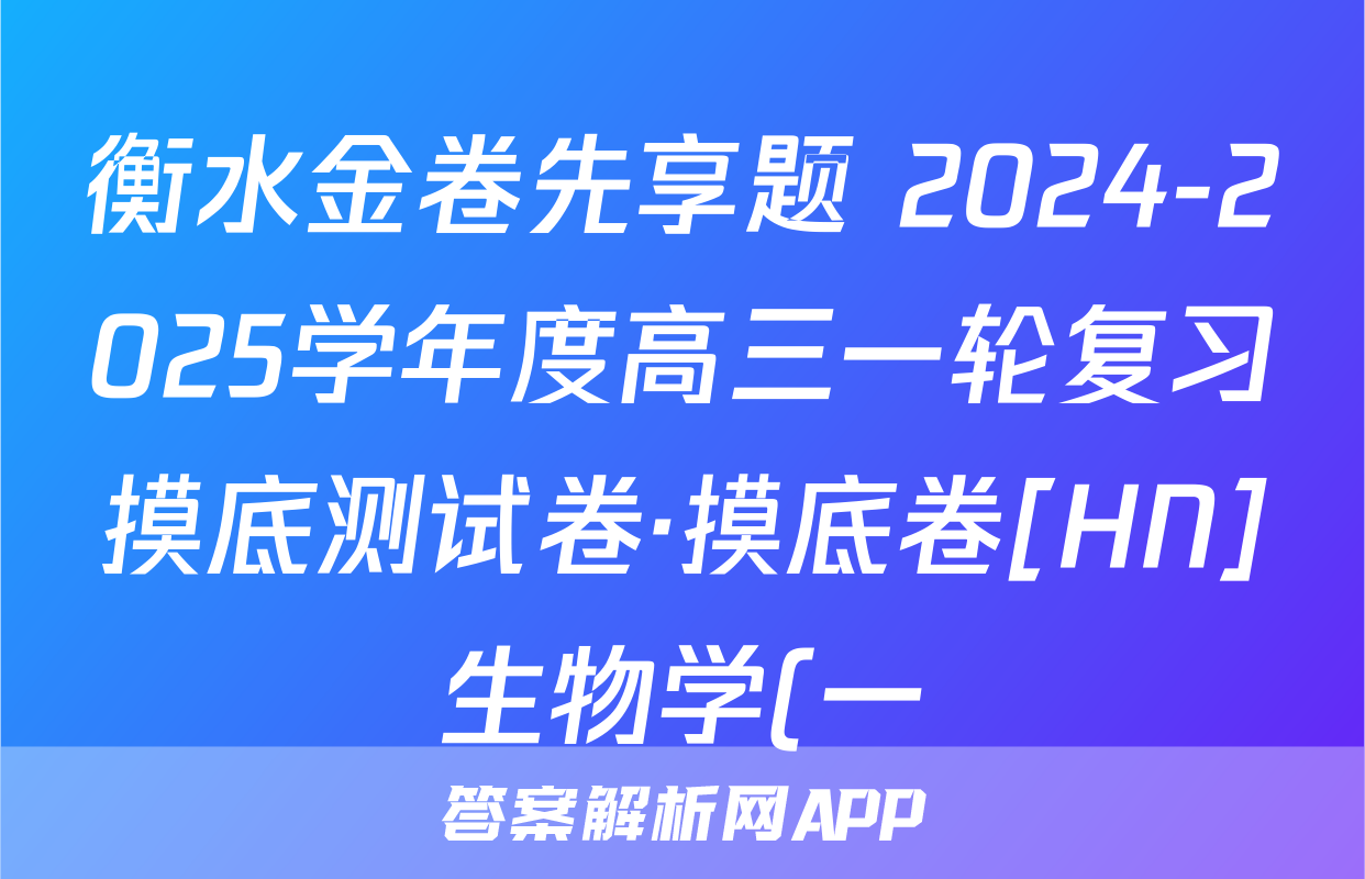 衡水金卷先享题 2024-2025学年度高三一轮复习摸底测试卷·摸底卷[HN]生物学(一)1试题正在持续更新,目前2026卷行天下答案网为大家整理了相关试题及答案,供大家查缺补漏,高效提升成绩。