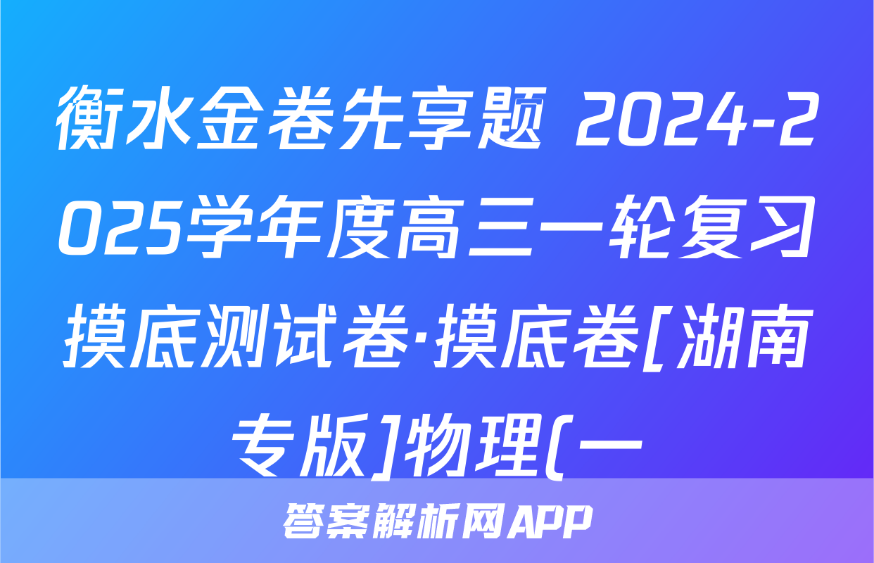 衡水金卷先享题 2024-2025学年度高三一轮复习摸底测试卷·摸底卷[湖南专版]物理(一)1试题正在持续更新,目前2026卷行天下答案网为大家整理了相关试题及答案,供大家查缺补漏,高效提升成绩。