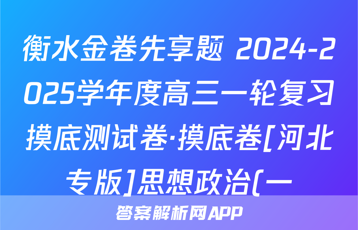 衡水金卷先享题 2024-2025学年度高三一轮复习摸底测试卷·摸底卷[河北专版]思想政治(一)1答案正在持续更新,目前2026卷行天下答案网为大家整理了相关试题及答案,供大家查缺补漏,高效提升成绩。