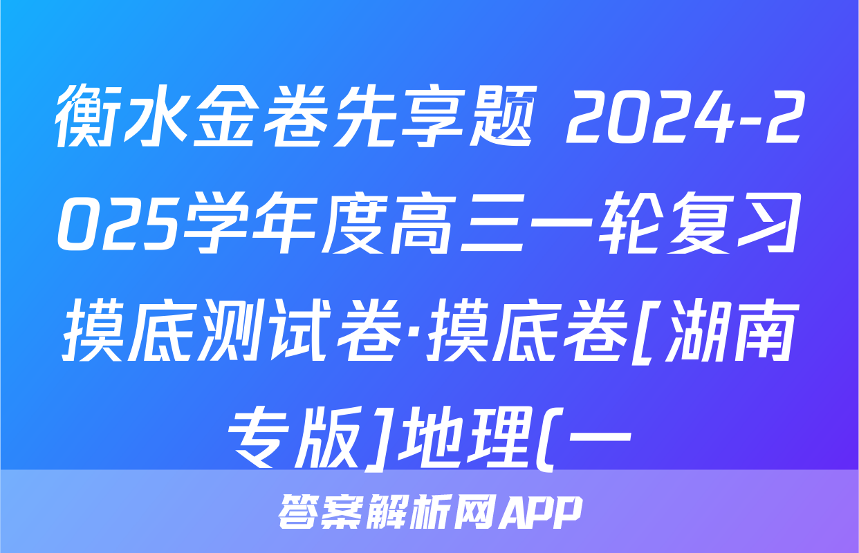 衡水金卷先享题 2024-2025学年度高三一轮复习摸底测试卷·摸底卷[湖南专版]地理(一)1答案正在持续更新,目前2026卷行天下答案网为大家整理了相关试题及答案,供大家查缺补漏,高效提升成绩。
