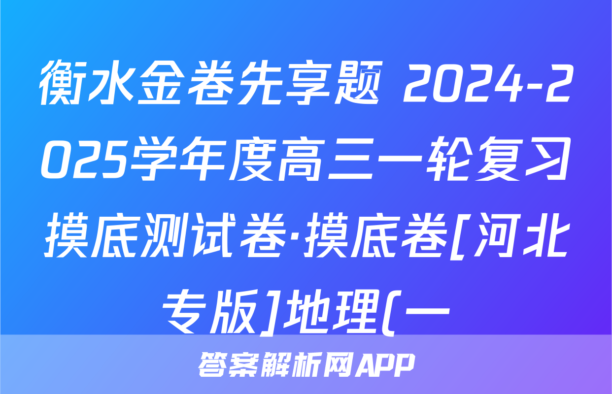 衡水金卷先享题 2024-2025学年度高三一轮复习摸底测试卷·摸底卷[河北专版]地理(一)1试题正在持续更新,目前2026卷行天下答案网为大家整理了相关试题及答案,供大家查缺补漏,高效提升成绩。