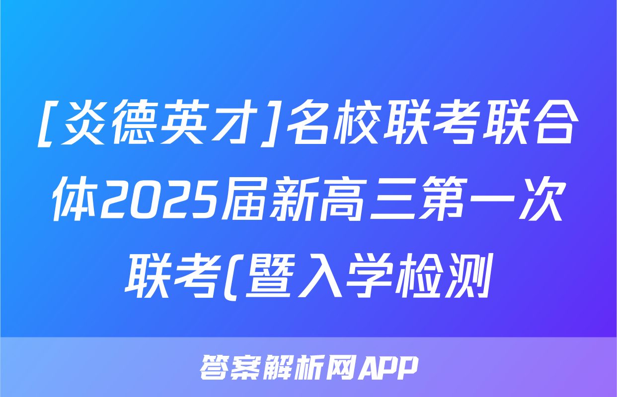 [炎德英才]名校联考联合体2025届新高三第一次联考(暨入学检测)历史答案正在持续更新,目前2026卷行天下答案网为大家整理了相关试题及答案,供大家查缺补漏,高效提升成绩。