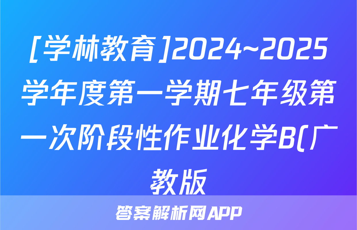 [学林教育]2024~2025学年度第一学期七年级第一次阶段性作业化学B(广教版)试题正在持续更新,目前2026卷行天下答案网为大家整理了相关试题及答案,供大家查缺补漏,高效提升成绩。