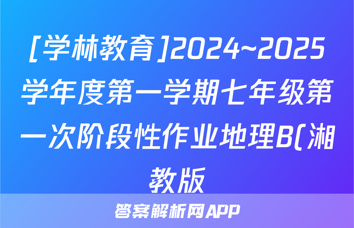 [学林教育]2024~2025学年度第一学期七年级第一次阶段性作业地理B(湘教版)试题正在持续更新,目前2026卷行天下答案网为大家整理了相关试题及答案,供大家查缺补漏,高效提升成绩。