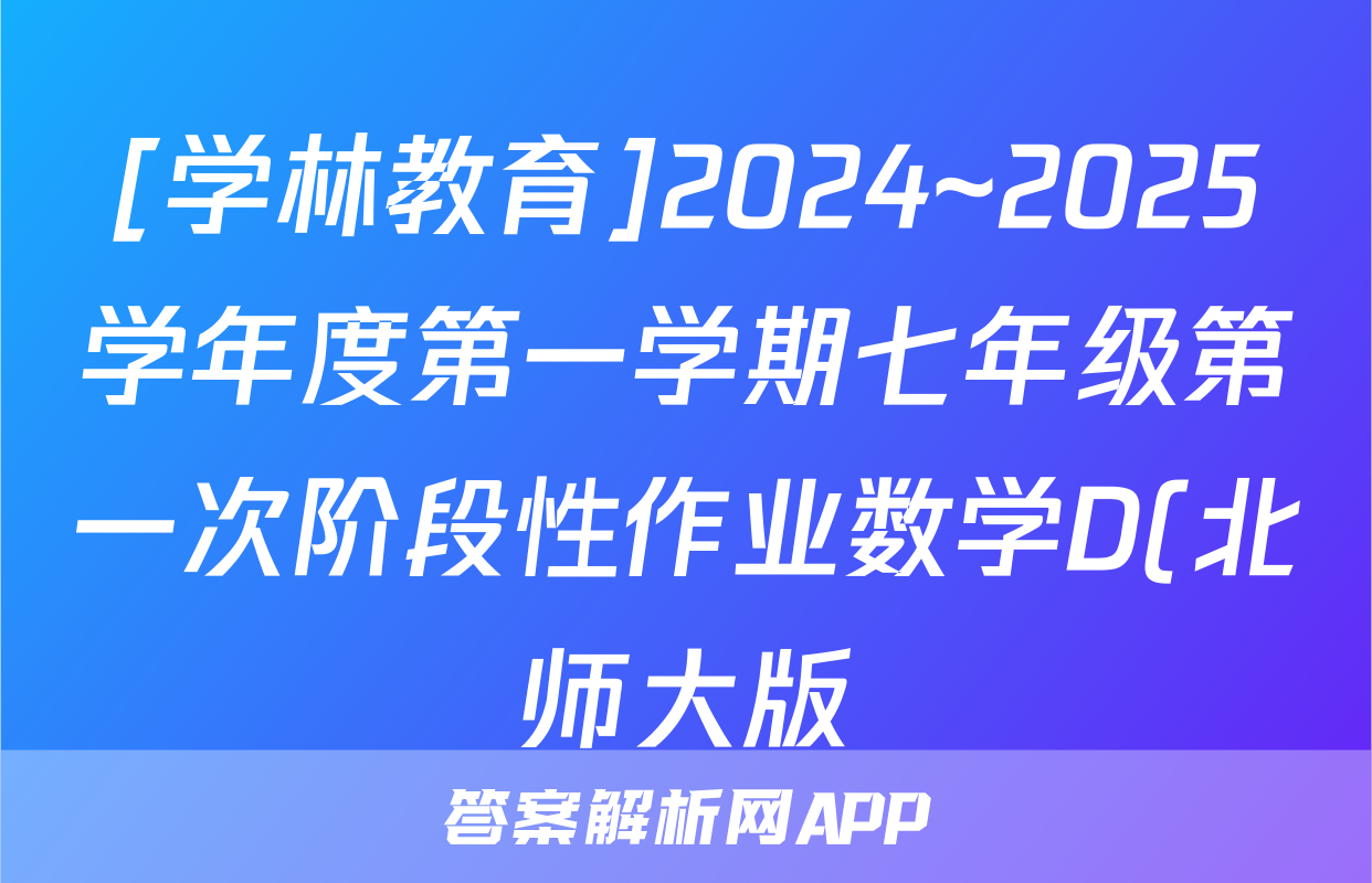 [学林教育]2024~2025学年度第一学期七年级第一次阶段性作业数学D(北师大版)答案正在持续更新,目前2026卷行天下答案网为大家整理了相关试题及答案,供大家查缺补漏,高效提升成绩。
