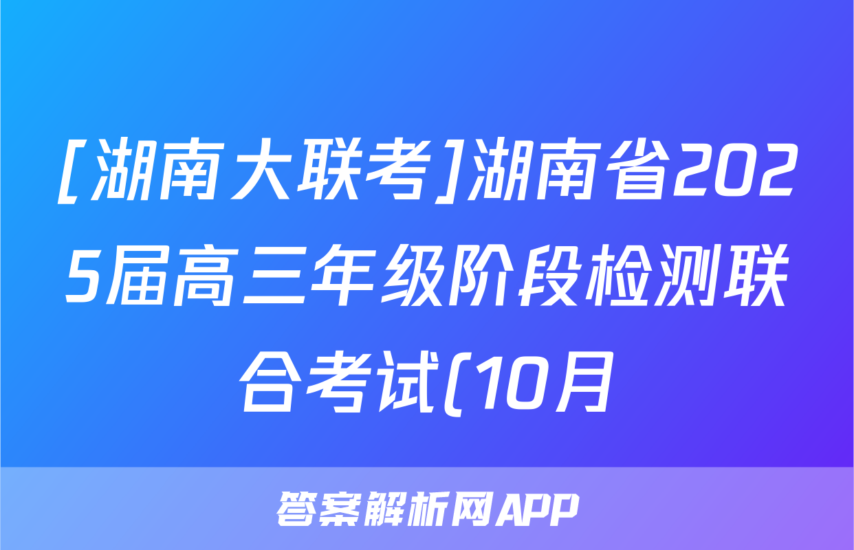 [湖南大联考]湖南省2025届高三年级阶段检测联合考试(10月)物理答案正在持续更新,目前2026卷行天下答案网为大家整理了相关试题及答案,供大家查缺补漏,高效提升成绩。